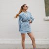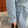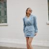 A detachable denim basque is an accent element that adds graphic to the silhouette and creates a layered effect. It emphasizes the waist and easily integrates into any look.