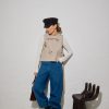 It features an interesting cut, long side ties, and wooden buttons in an ethnic style.