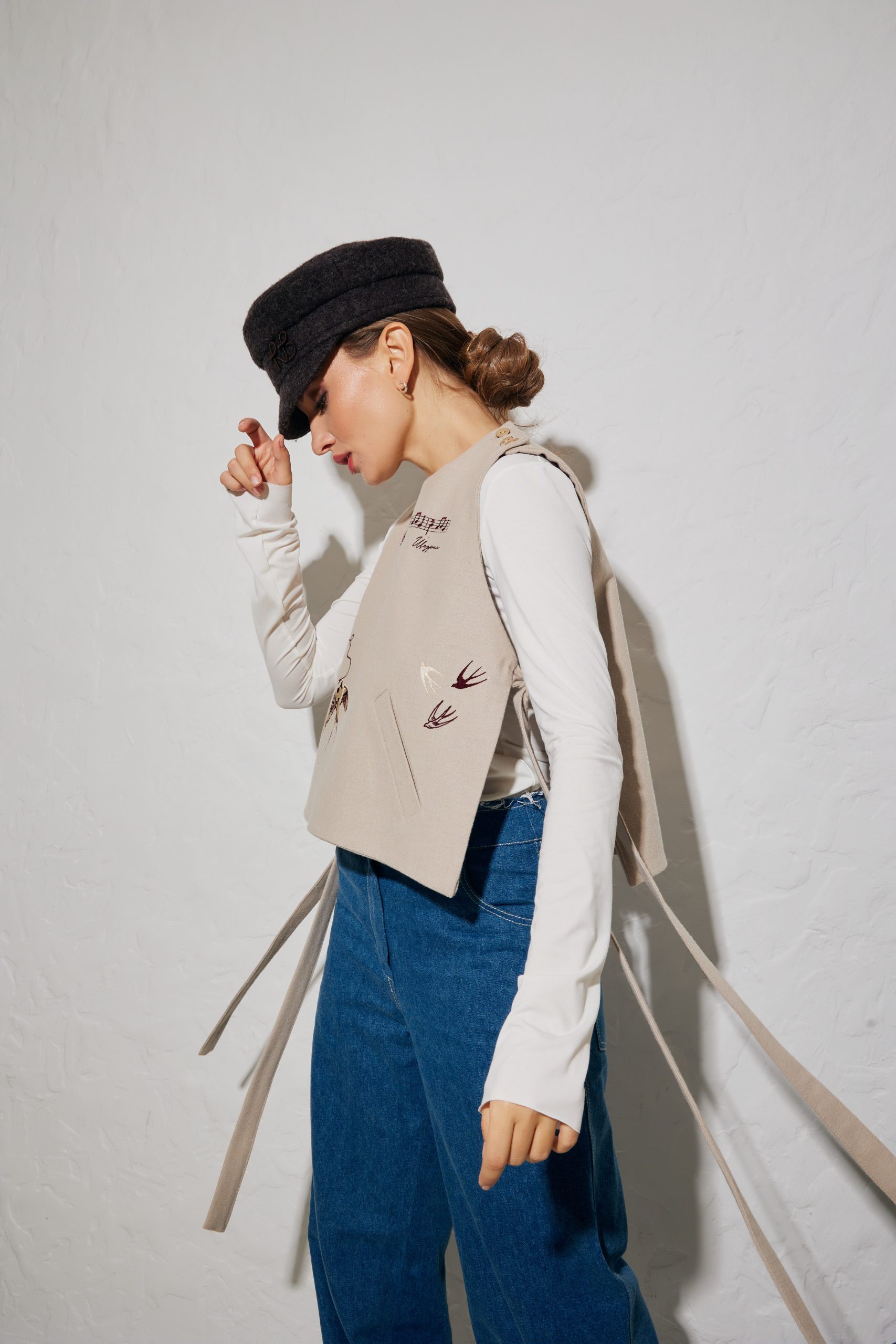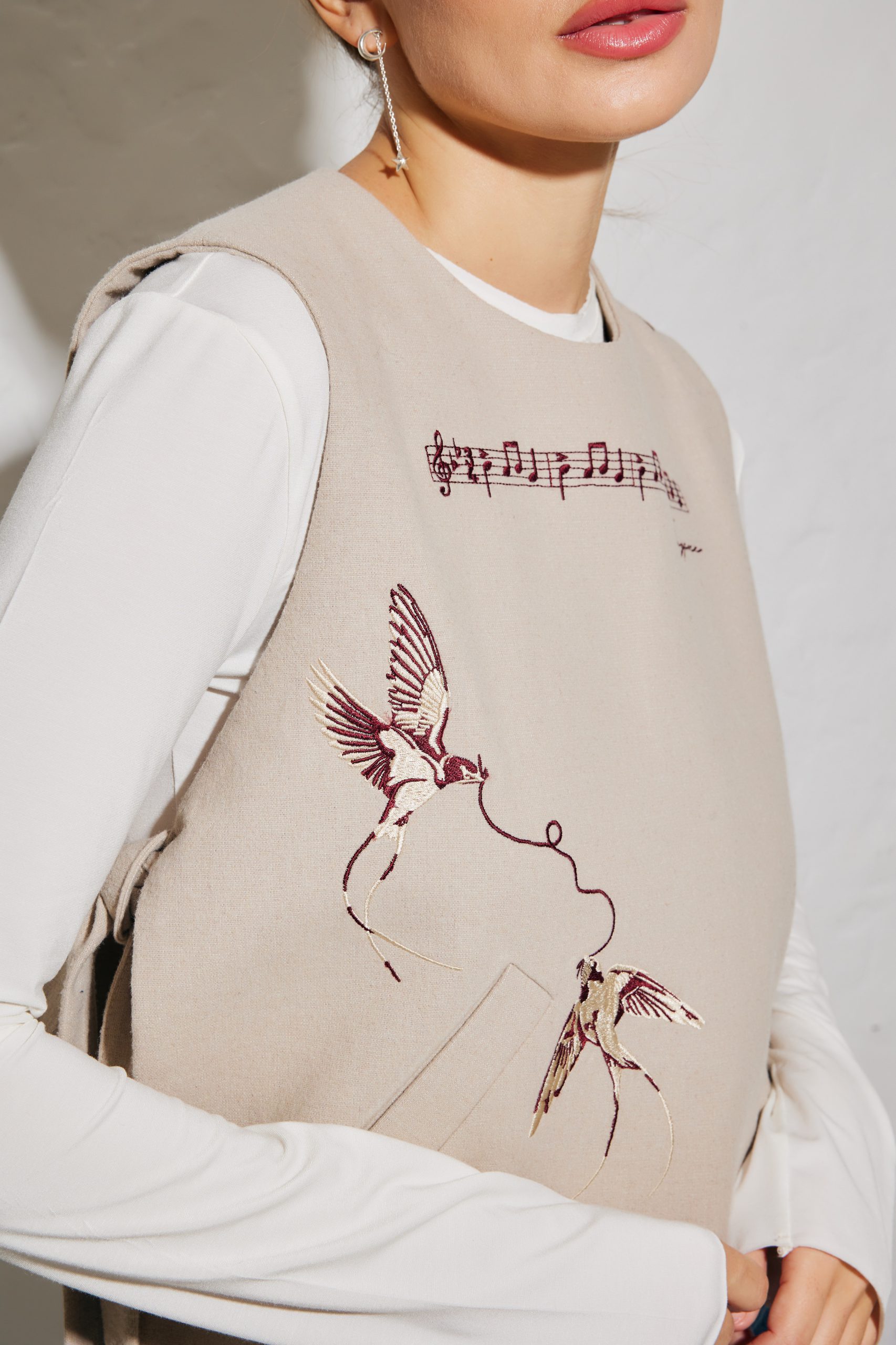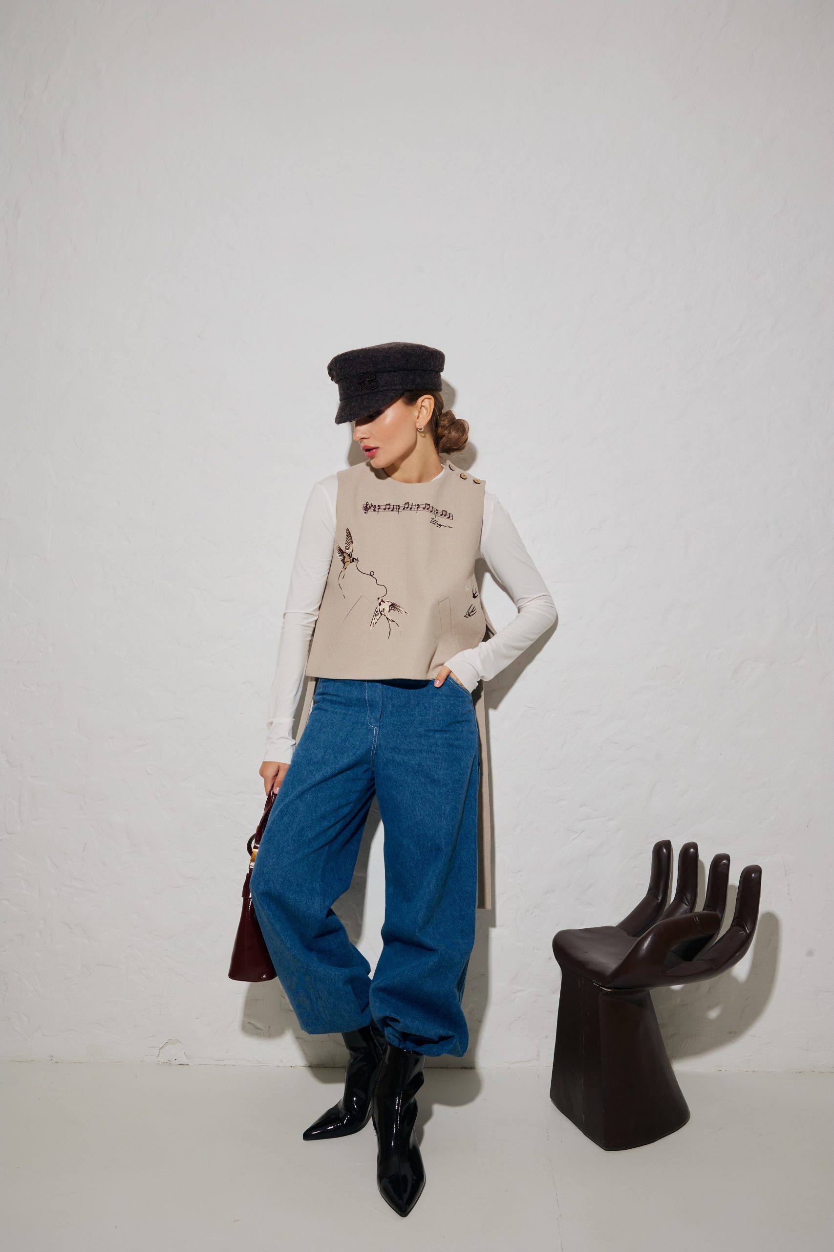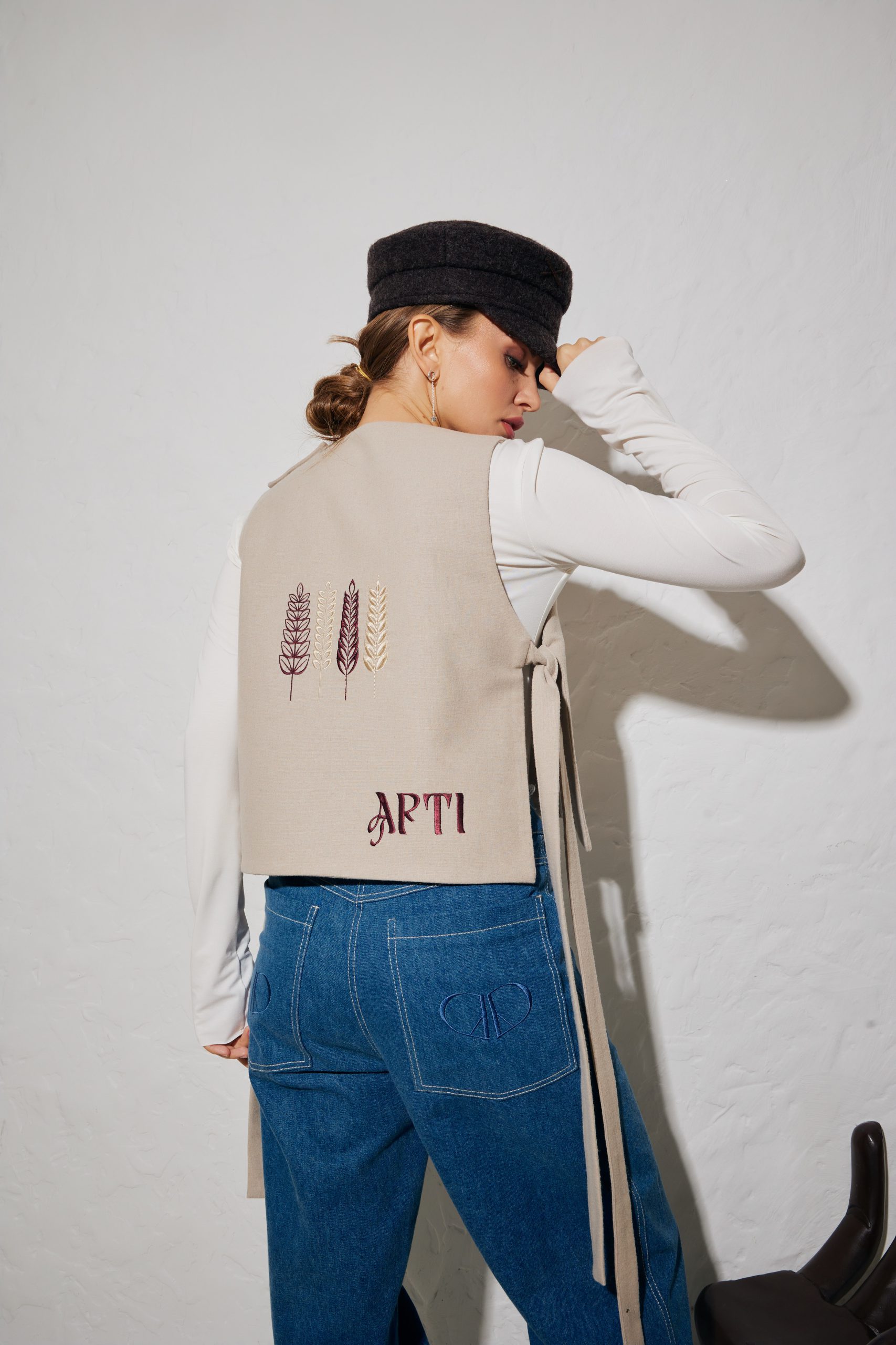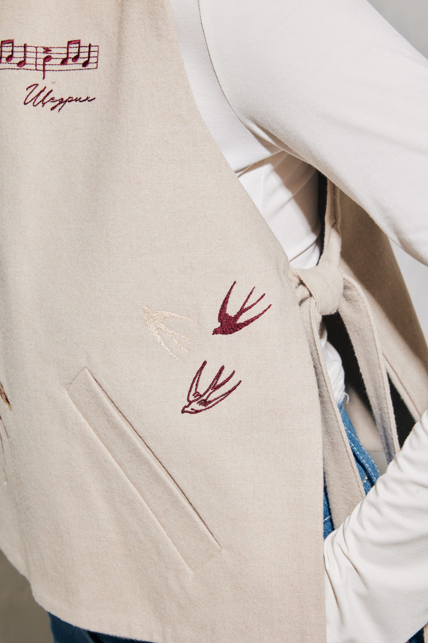 The vest is made from beautiful fabric with ethnic motifs and adorned with embroidery rich in special meanings, where each element tells its own unique story.