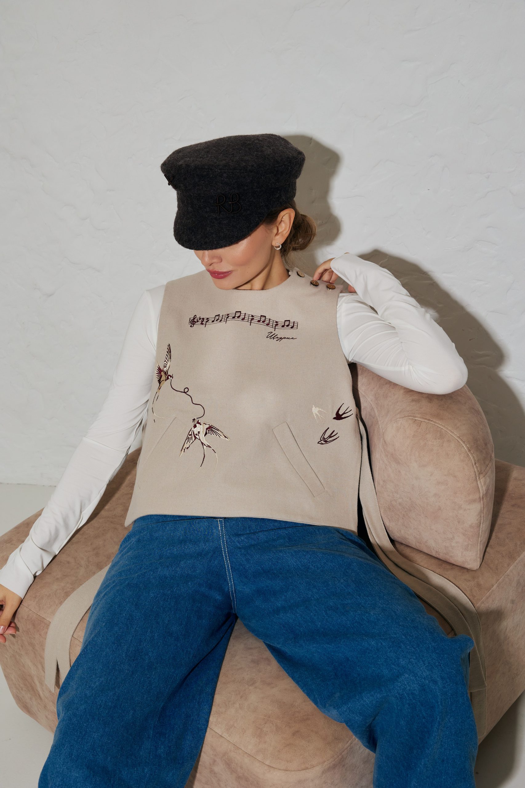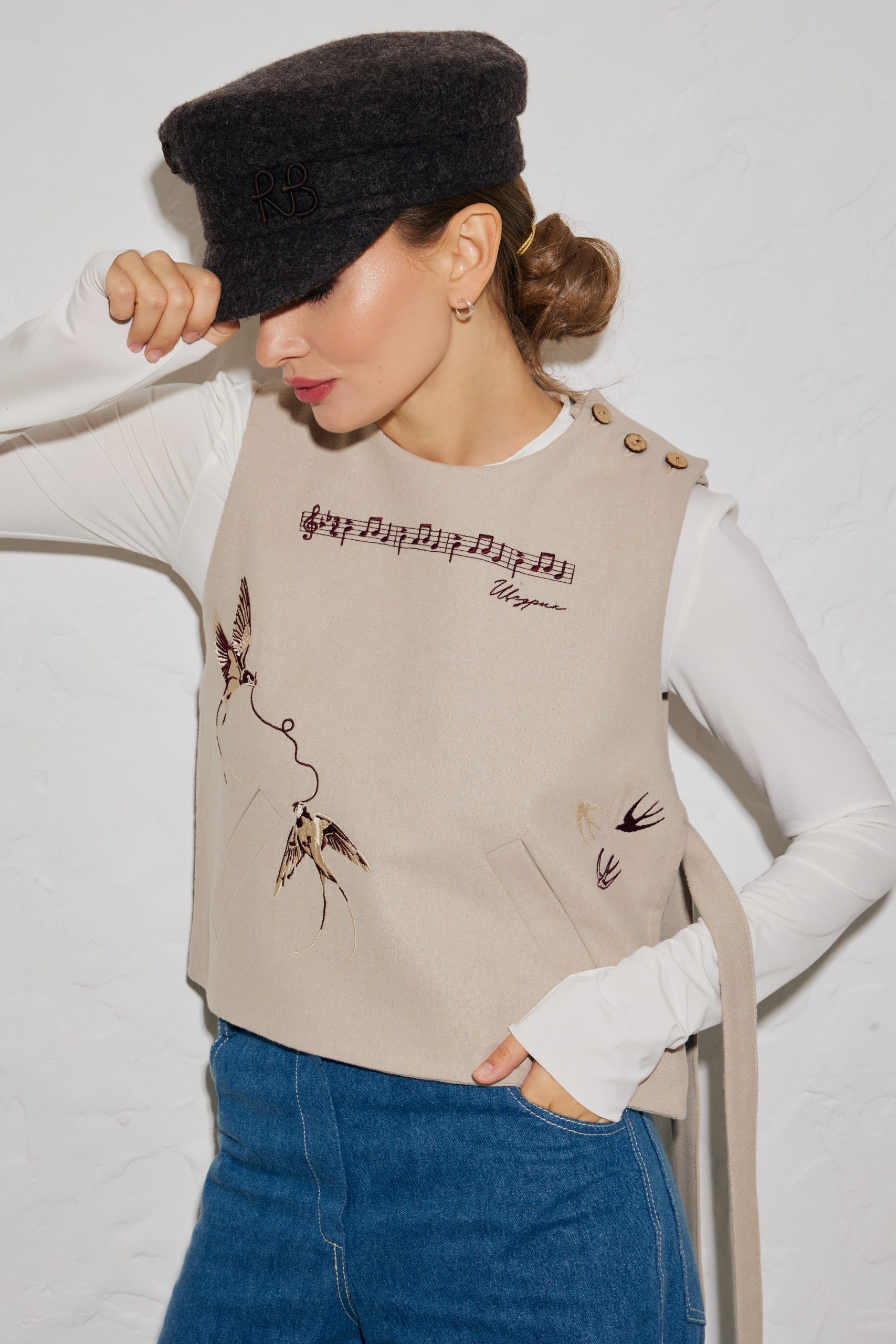 Ethno Vest from the “Shchedryk” Collection bordeaux/beige