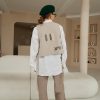 It features an interesting cut, long side ties, and wooden buttons in an ethnic style.
