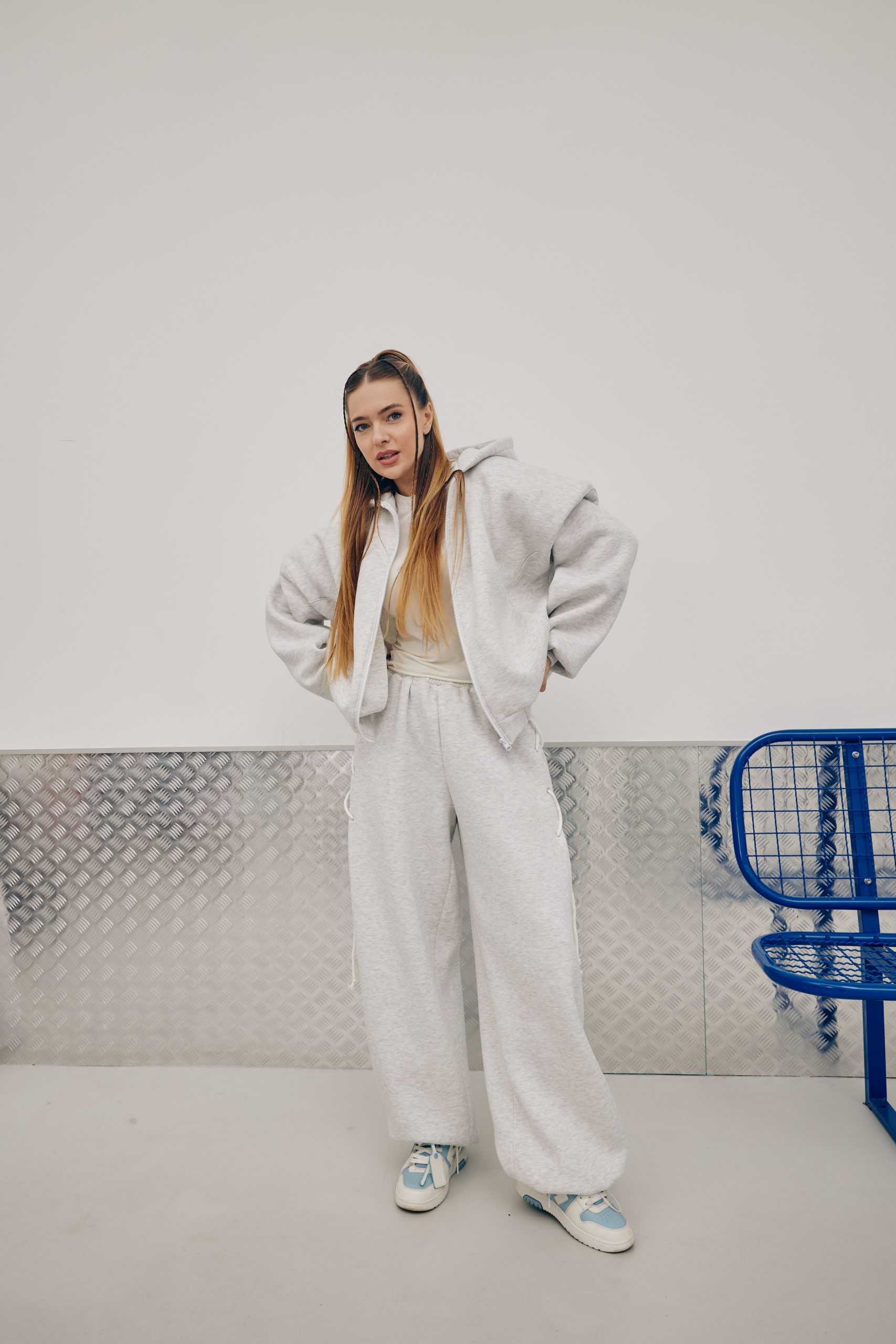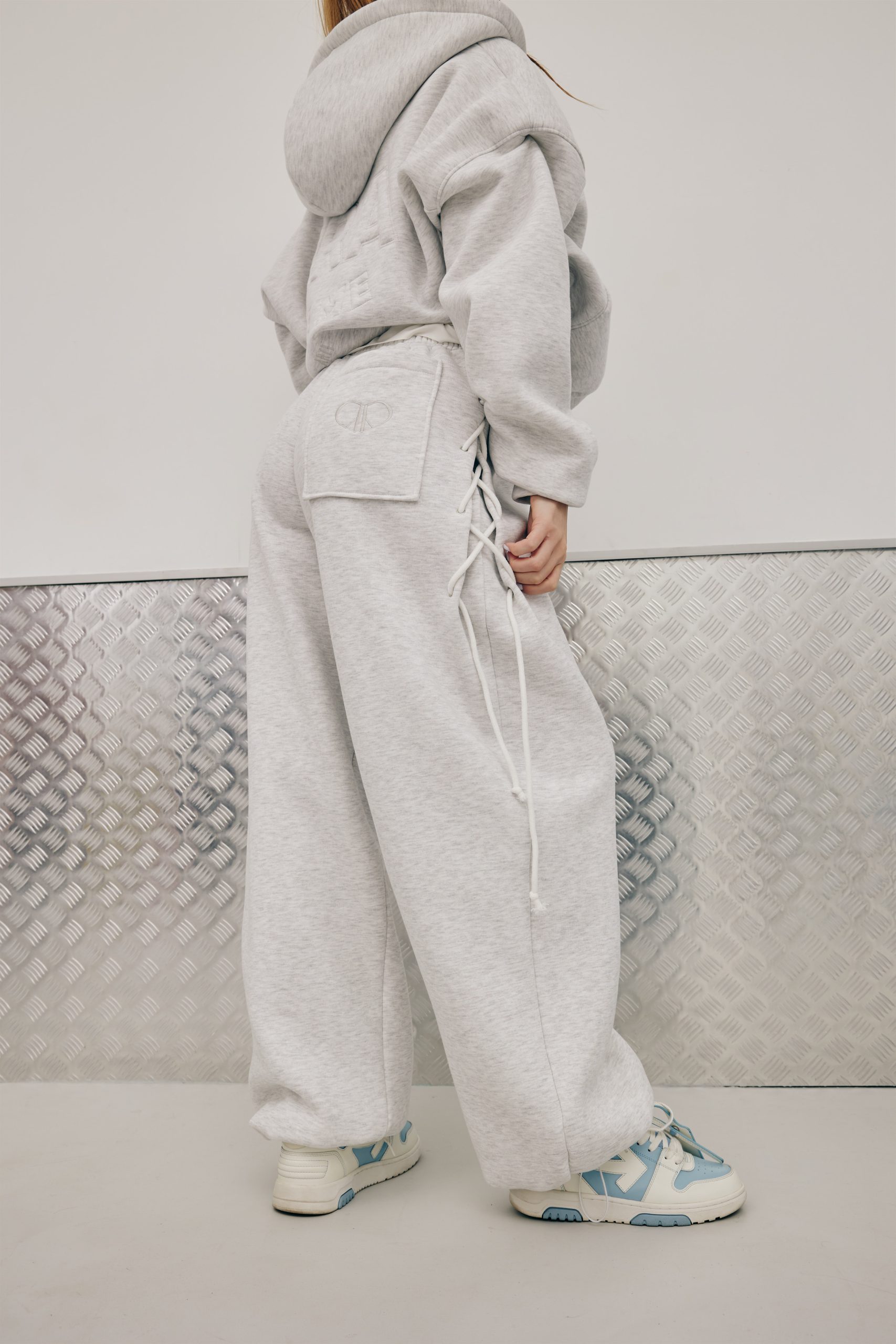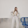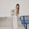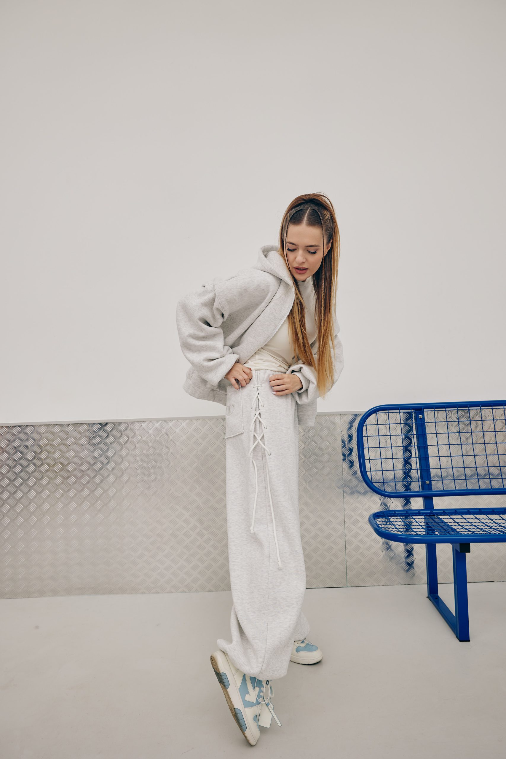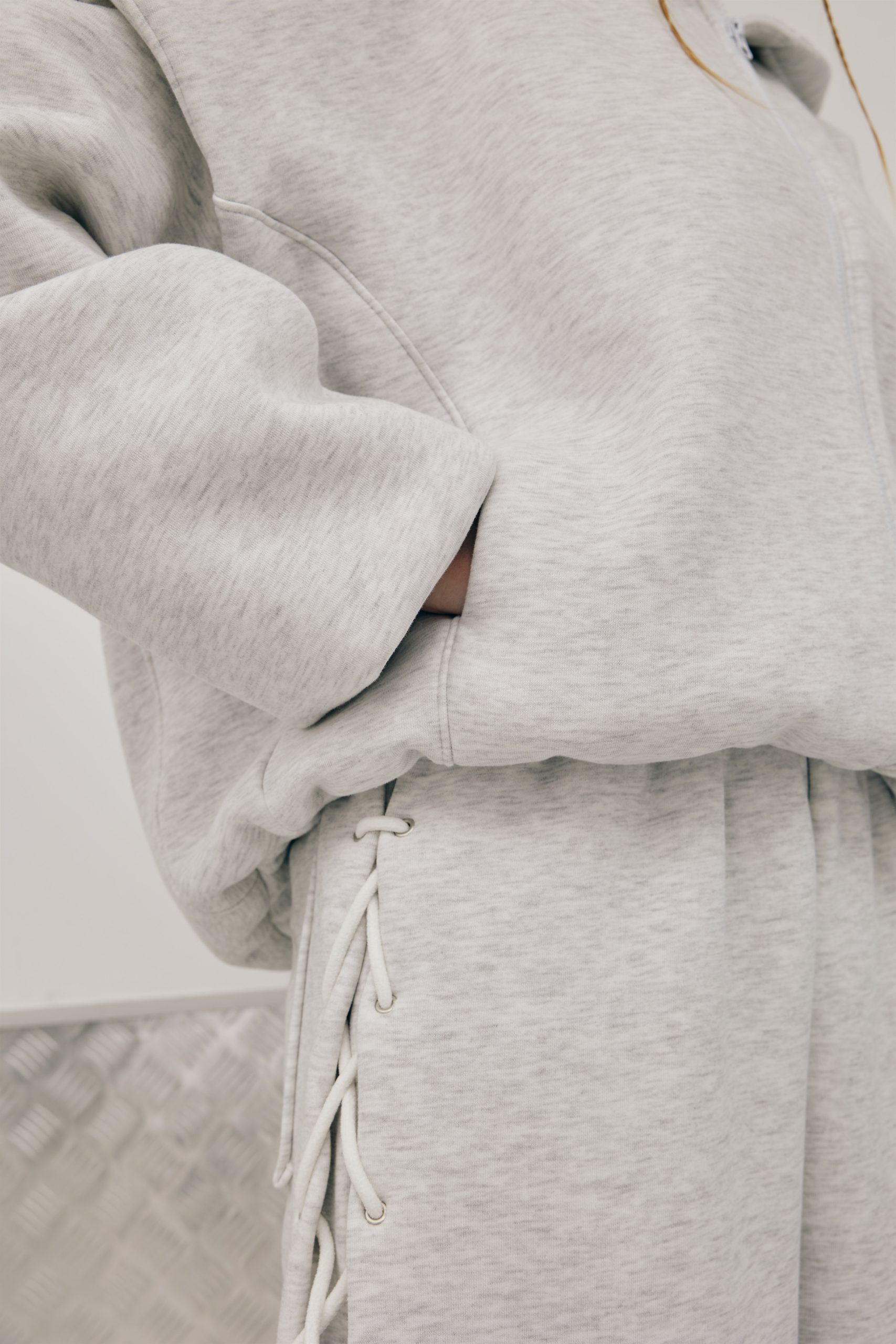 Embroidery on the pocket adds tactility, and the bottom elastic allows you to change the silhouette – from loose straight to gathered.