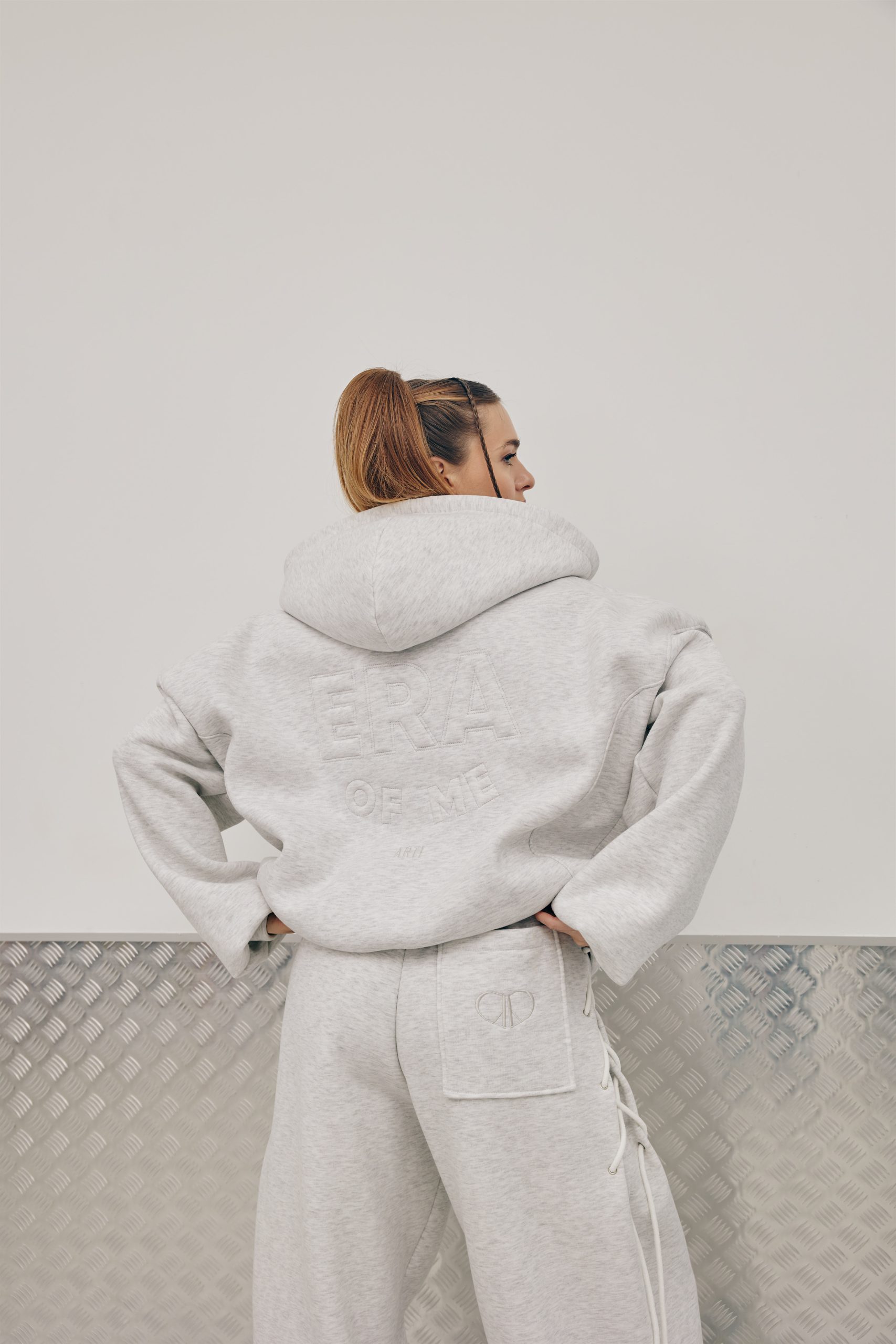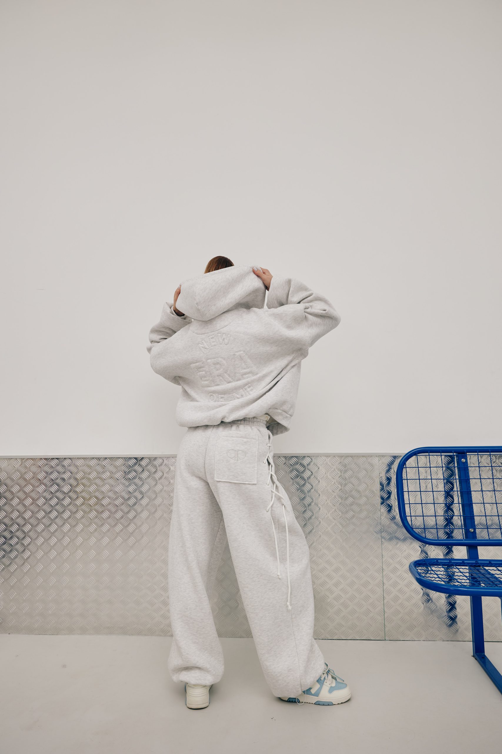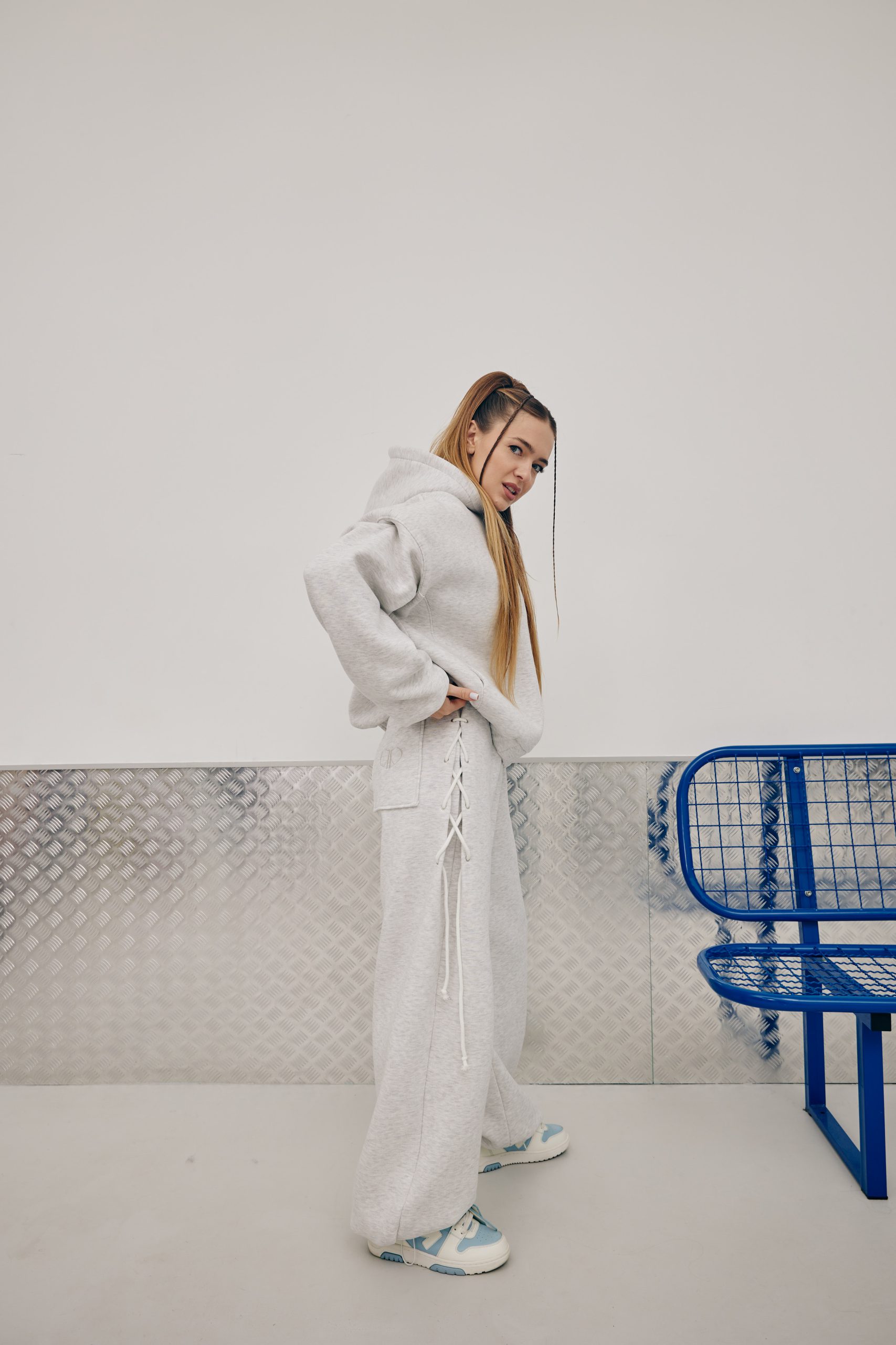 Embroidery on the pocket adds tactility, and the bottom elastic allows you to change the silhouette – from loose straight to gathered.
