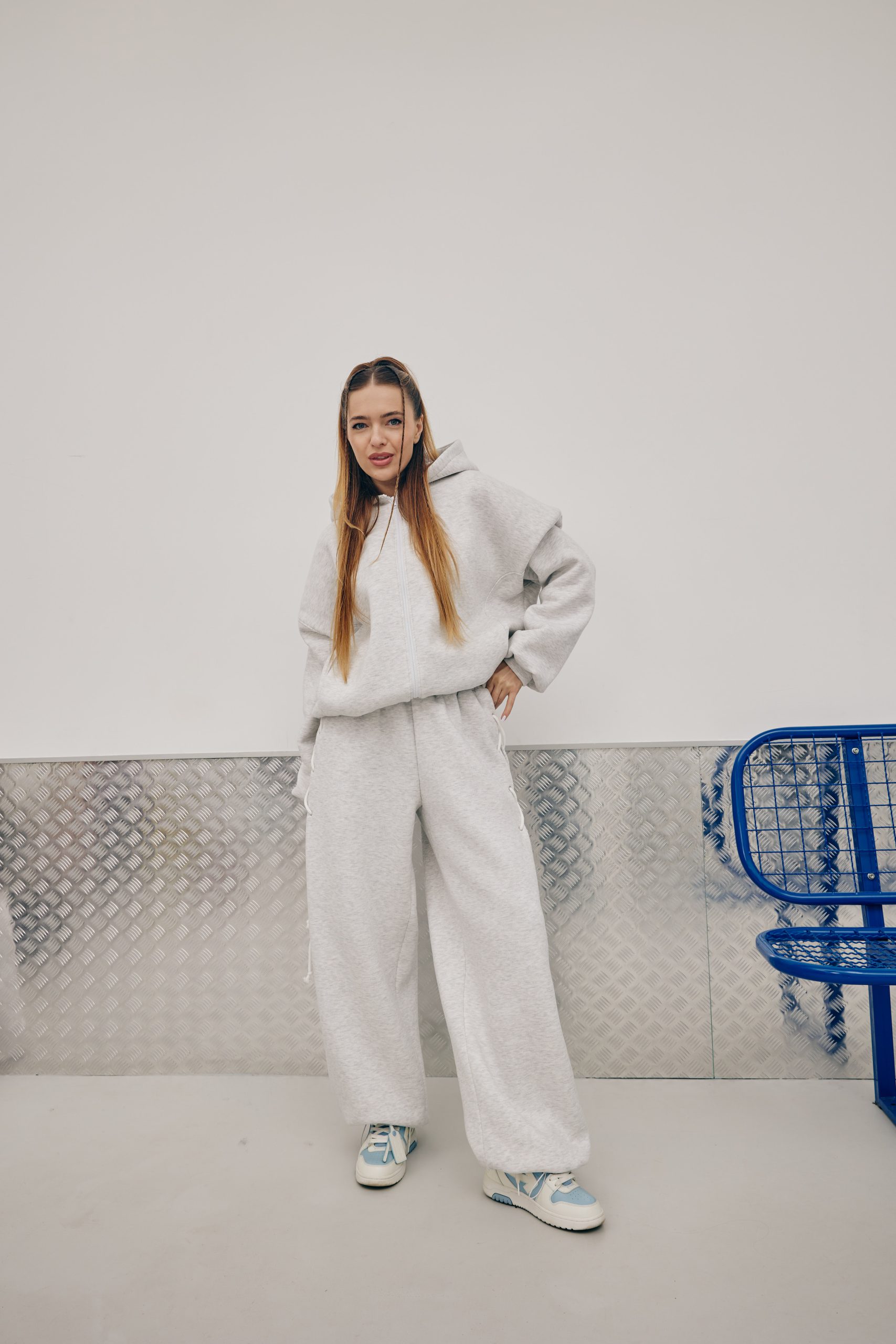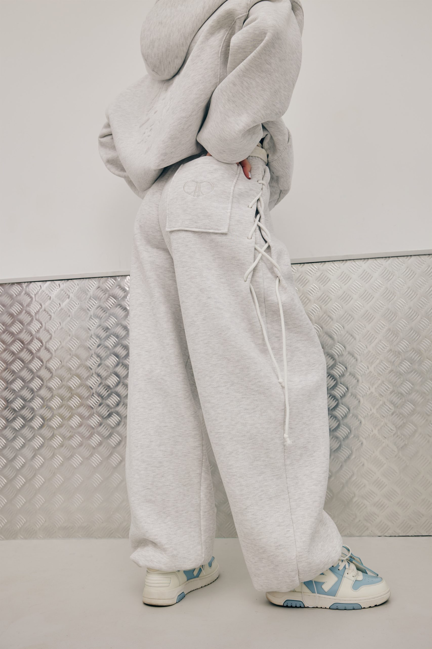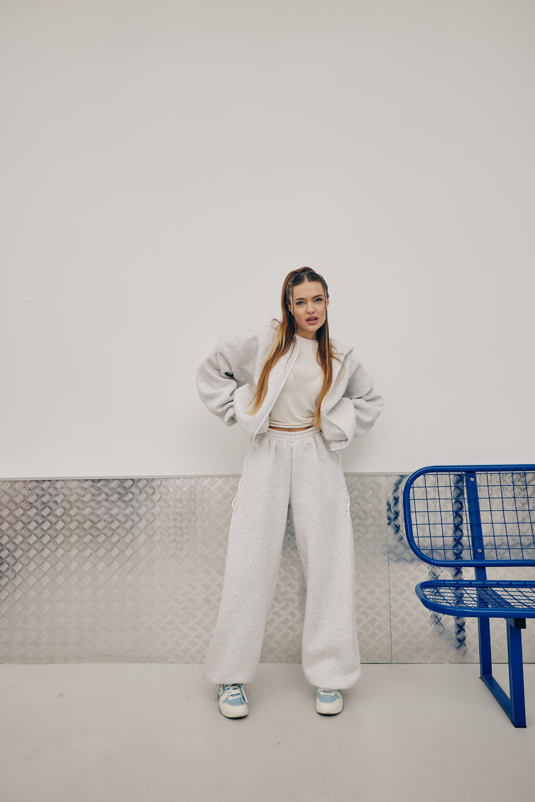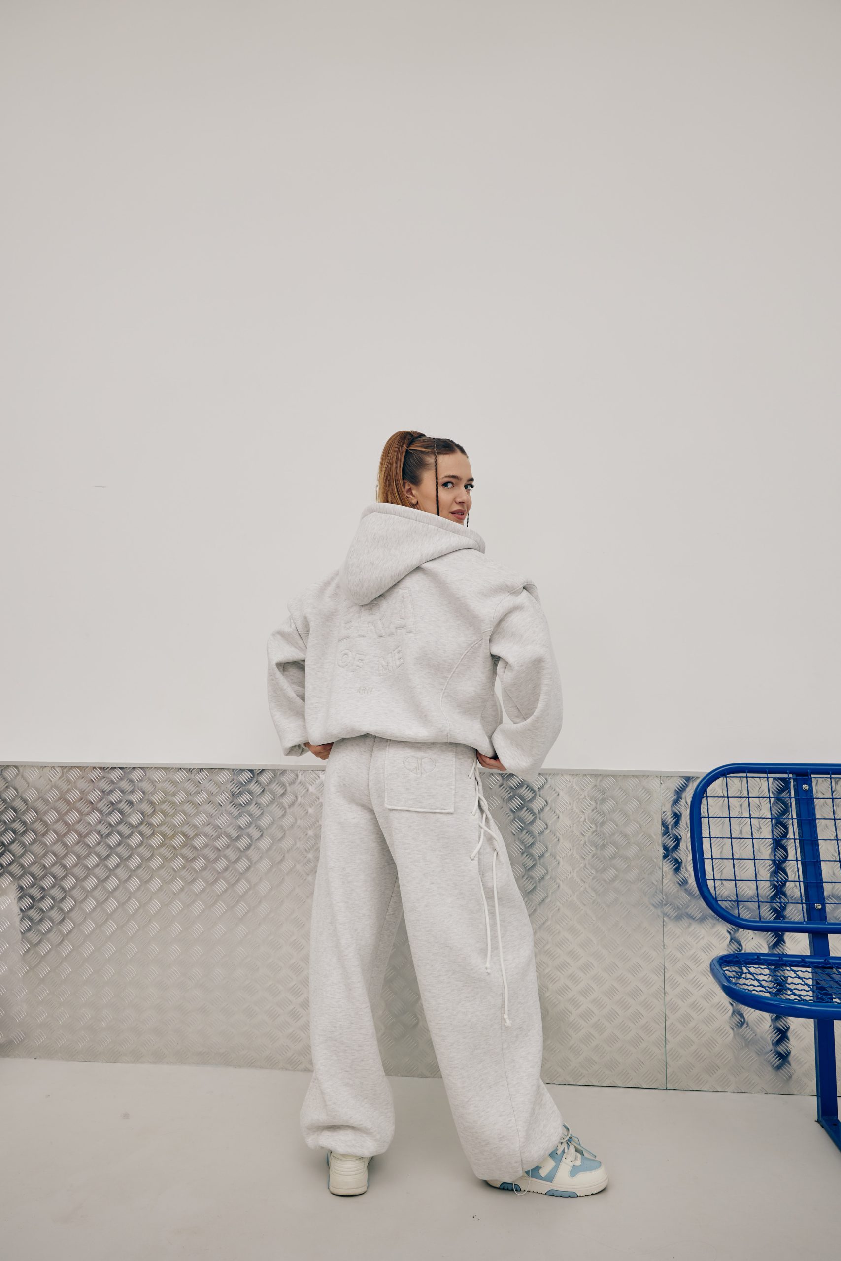 Embroidery on the pocket adds tactility, and the bottom elastic allows you to change the silhouette – from loose straight to gathered.