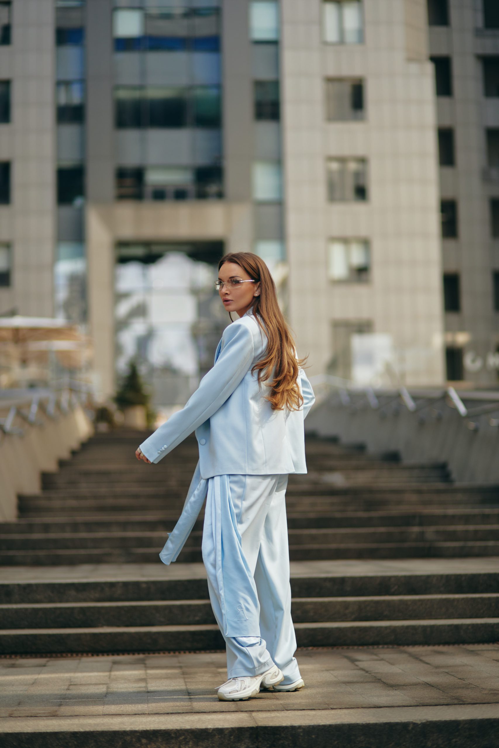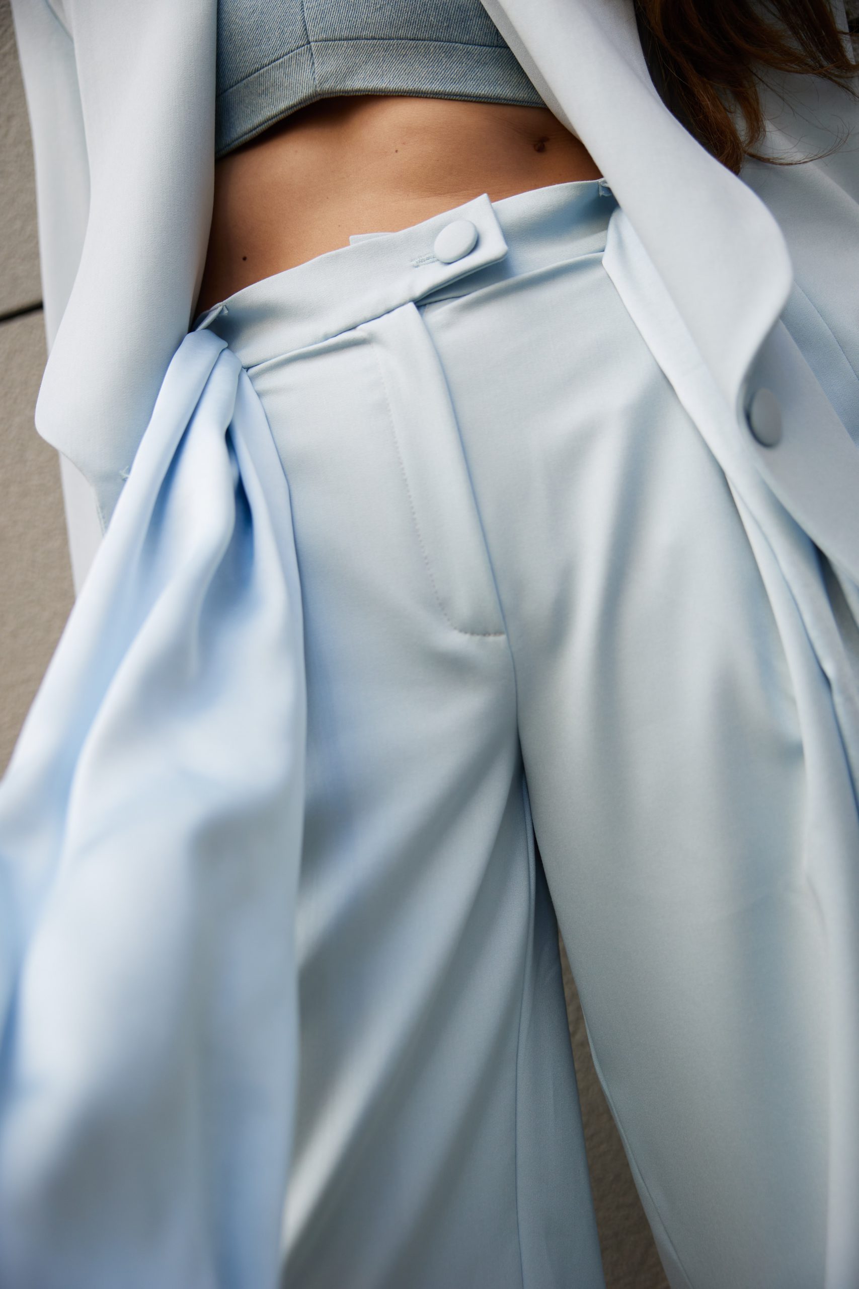 Straight-cut pants with elegant pleats that perfectly complement the jacket.