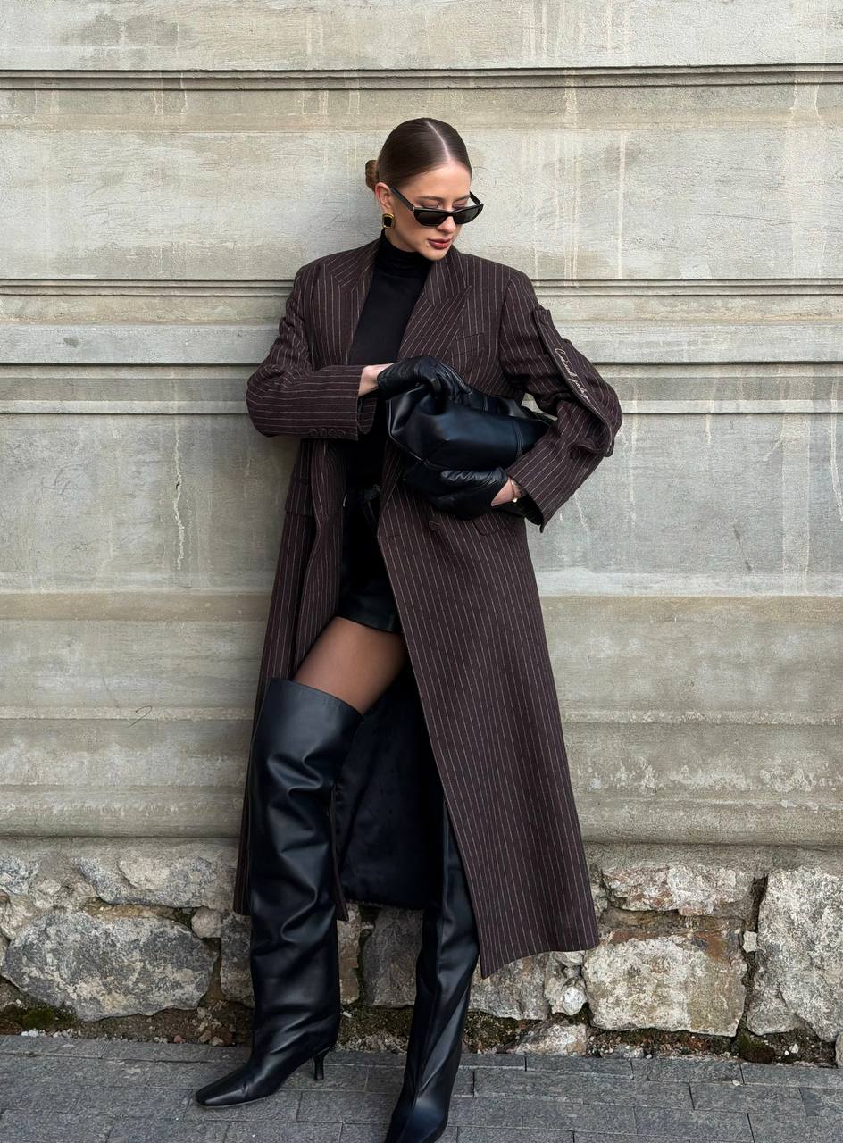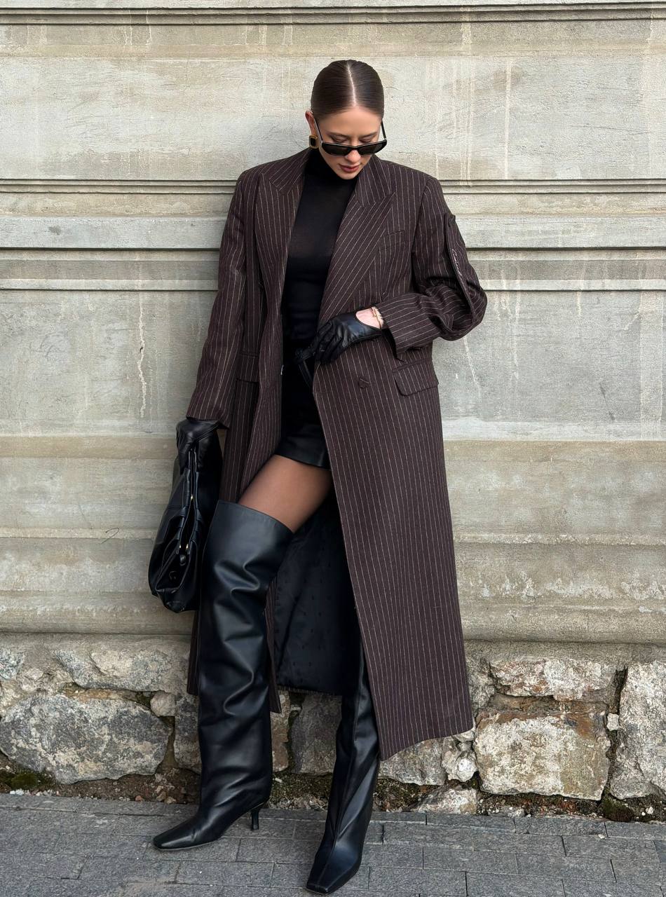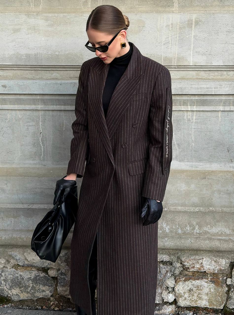 Пальто в полоску коричневе