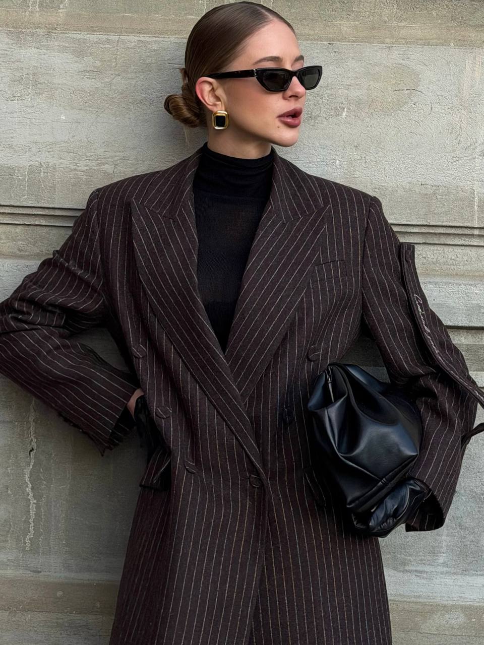 Прямий крій, розлогий лацкан та делікатно приталений силует формують виразну, але стриману форму.