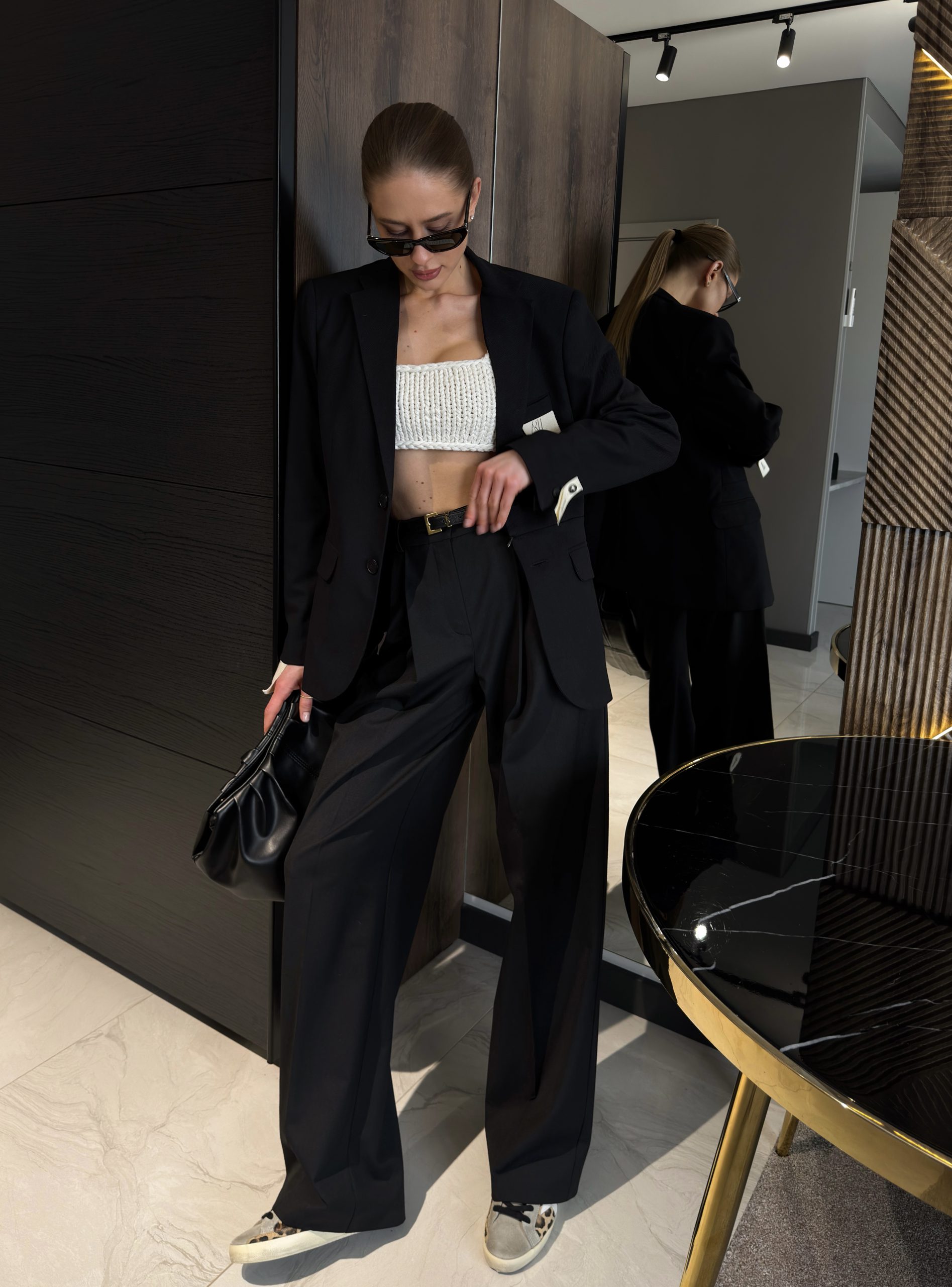 Жакет Трансформер з асиметричною застібкою в чорному кольорі. Жакет можна стилізувати в різних варіаціях застібки.